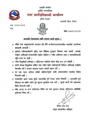आगलागी रोकथामका लागि अत्यन्त जरुरी सूचना ।