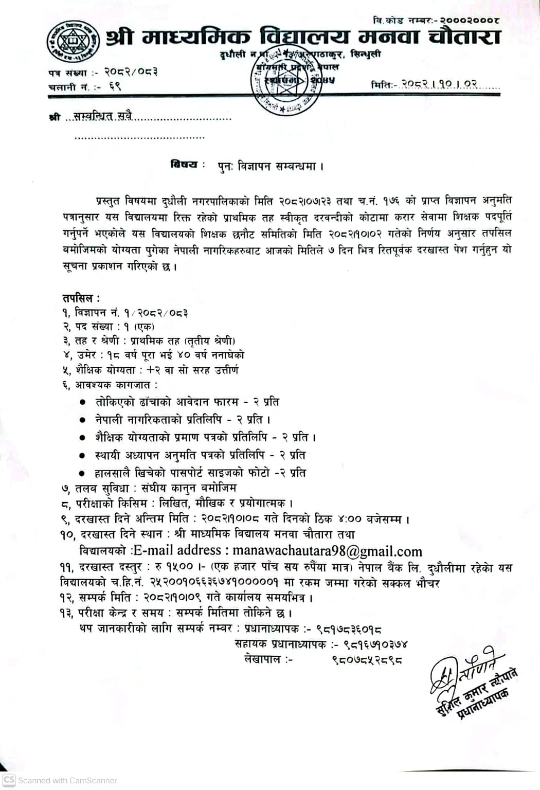 पुन: विज्ञापन सम्बन्धमा।