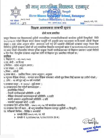 » शिक्षक आवश्यकता सम्बन्धी सूचना ।