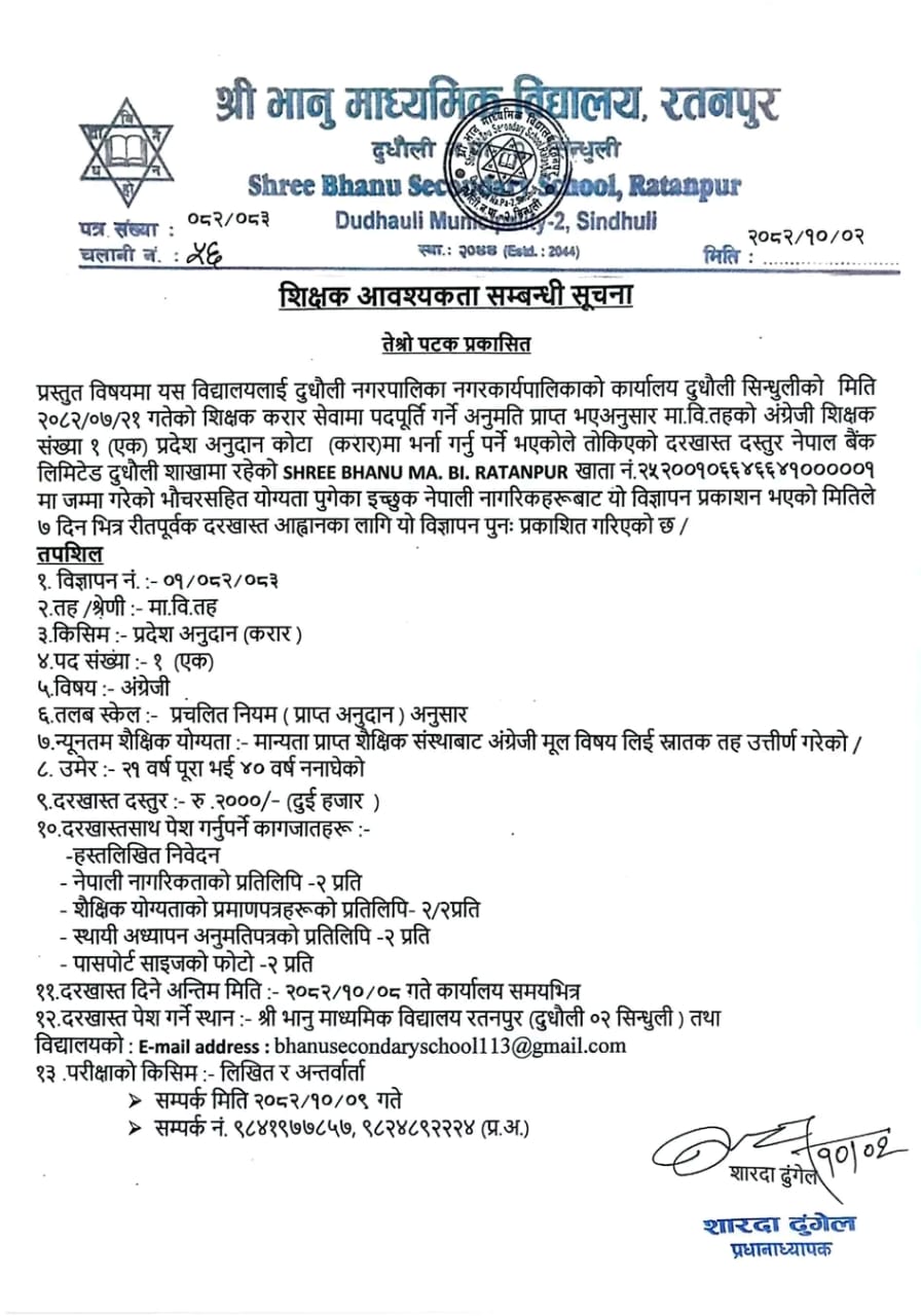 » शिक्षक आवश्यकता सम्बन्धी सूचना ।
