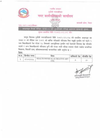 आधारभूत शिक्षा परीक्षा (कक्षा -८) को पुनर्योगको नतिजा प्रकाशन सम्बन्धी सूचना ।