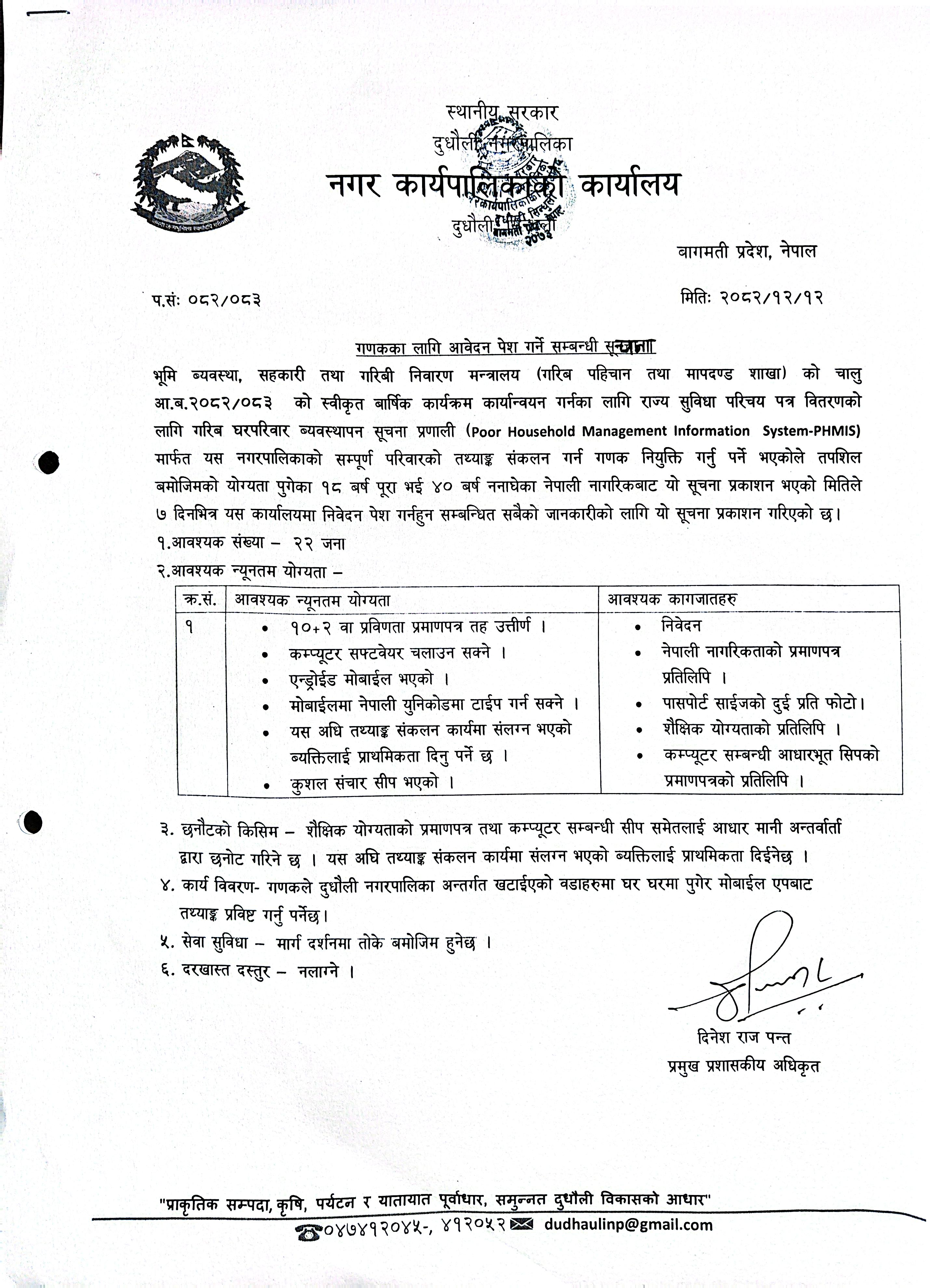 गणकका लागि आवेदन पेश गर्ने सम्बन्धी सूचना ।