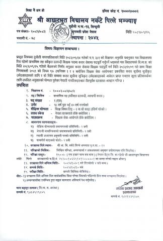 वृहत खानेपानी आयोजना वडा नं ४ - आशय पत्रको सूचना ।