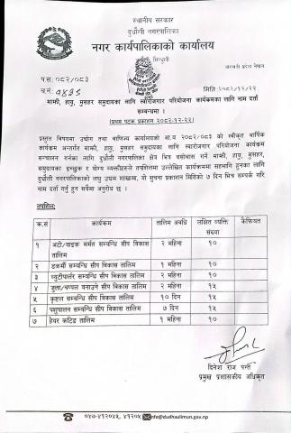 माझी, हायु, मुसहर समुदायका लागि स्वरोजगार परियोजना कार्यक्रमका लागि नाम दर्ता सम्बन्धी सूचना ।