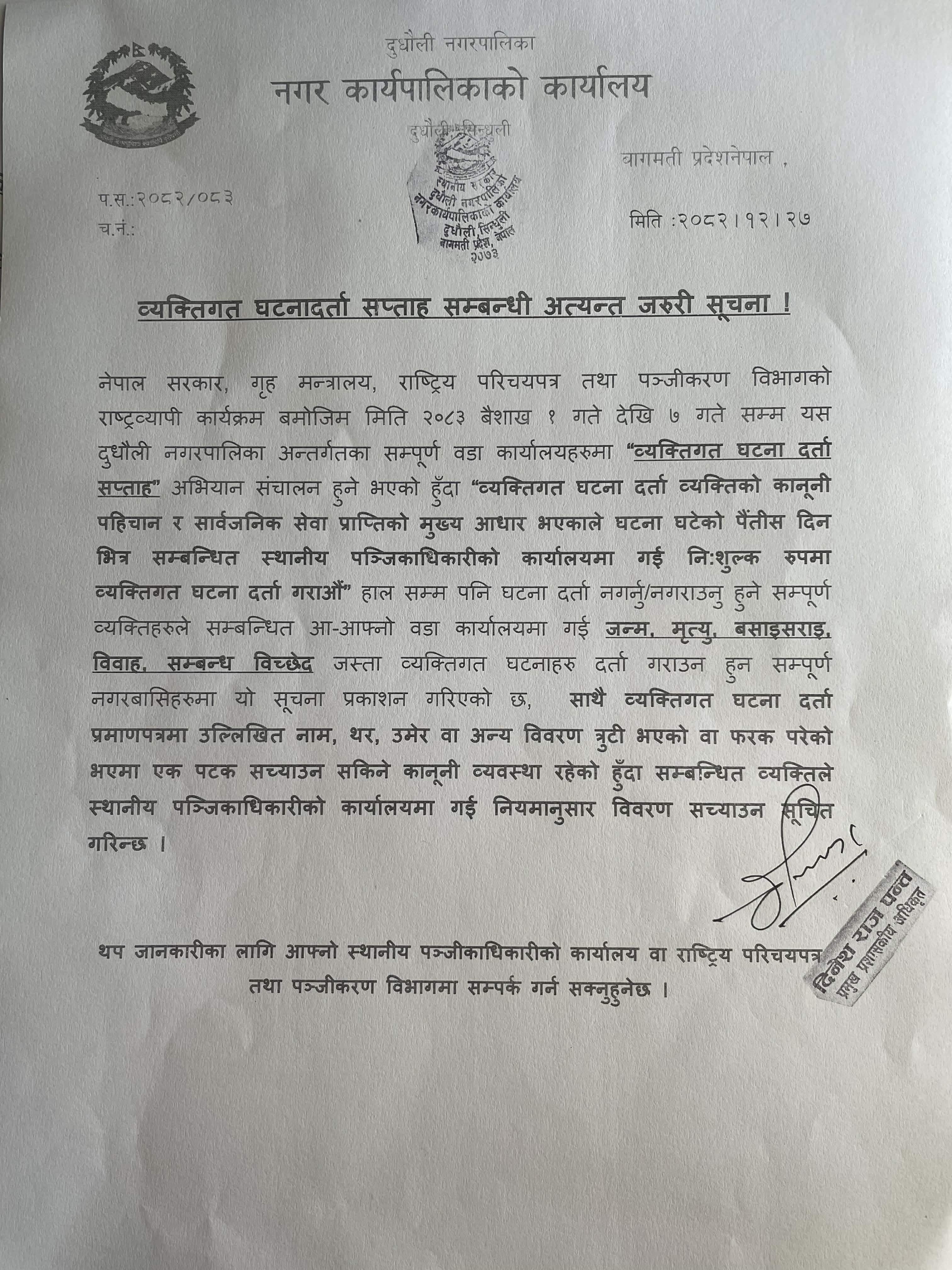 व्यक्तिगत घटनादर्ता सप्ताह सम्बन्धी अत्यन्त जरुरी सूचना ।